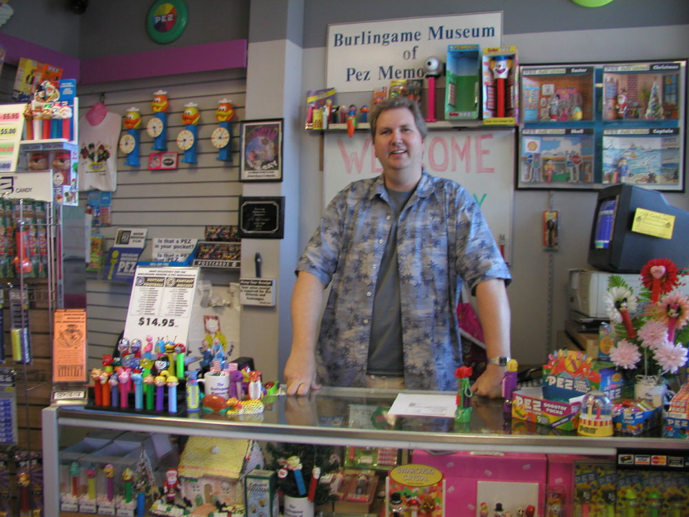 Heres Gary Doss behind his front counter. You don't need to pay to get into the Pez museum. |